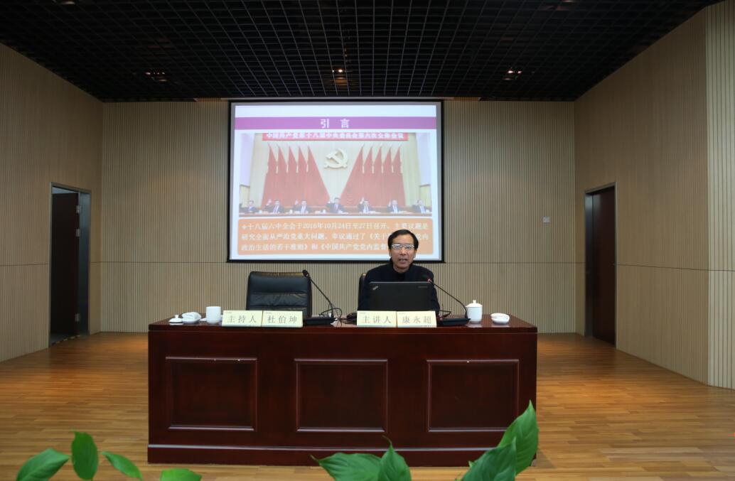 隨后,常州市委黨校理論研究中心主任康永超教授應(yīng)邀為全體黨員和領(lǐng)導(dǎo)干部作了《開啟全面從嚴(yán)治黨新征程》的宣講,他通過對“六中全會的總體定位與鮮明特點”、“全會對習(xí)近平核心地位的明確”、“《準(zhǔn)則》和《條例》的基本要求”這三個問題的解讀,幫助黨員和領(lǐng)導(dǎo)干部進一步理解全面從嚴(yán)治黨的重要性和必要性,理解《關(guān)于新形勢下黨內(nèi)政治生活的若干準(zhǔn)則》和《中國共產(chǎn)黨黨內(nèi)監(jiān)督條例》的基本要求。